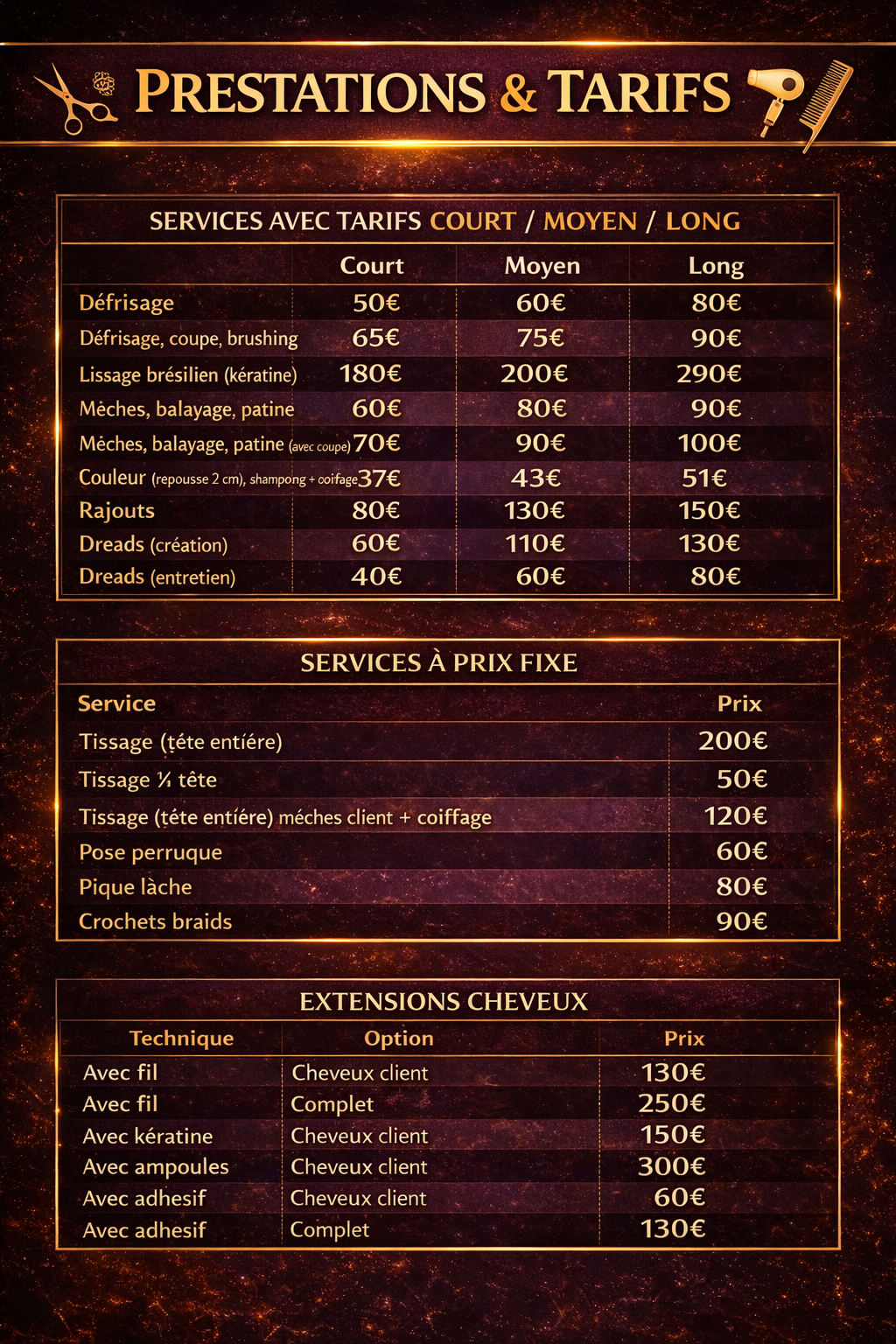 Tarifs